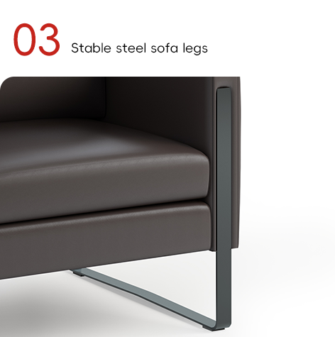 Material:1. Pu Leather or cowhide genuine leather. 2. Flattened and dried Solid wood for inner frame; 3. High-density sponge; 4. Stainless steel feet